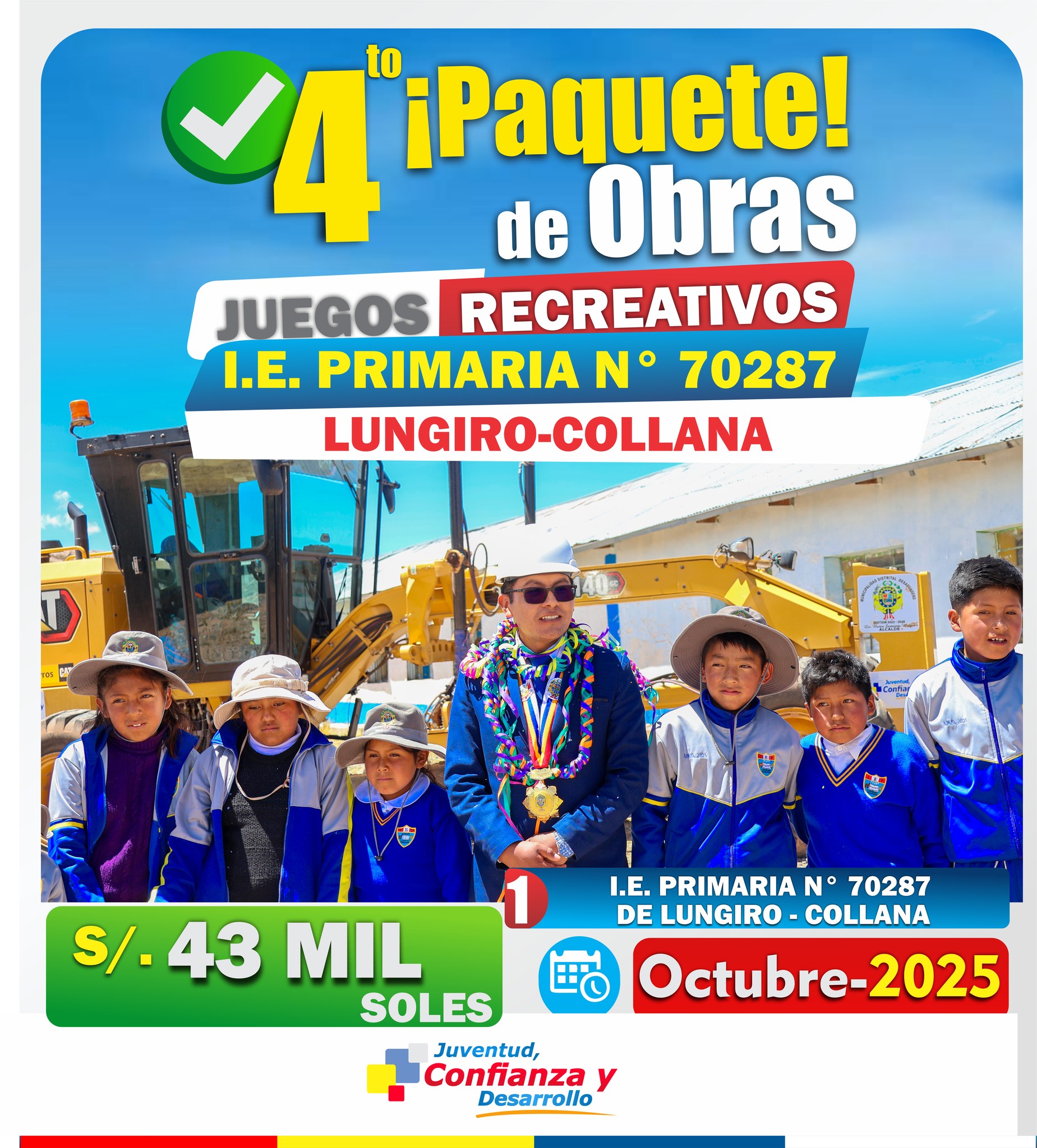 Este proyecto impulsa la construcciรณn de Juegos Recreativos en la I.E. Primaria Nยฐ 70287, promoviendo espacios mรกs seguros y alegres para el desarrollo integral de nuestros niรฑos y niรฑas.