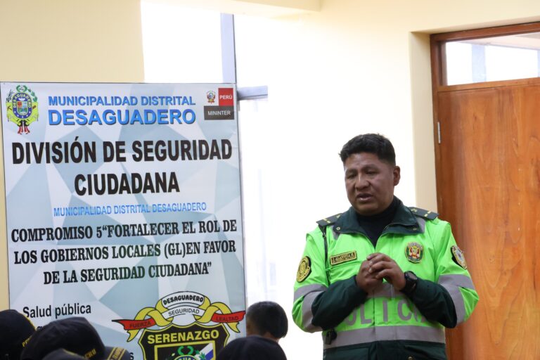 🚔📘 CAPACITACIÓN EN SEGURIDAD Y GESTIÓN VIAL Fortalecimiento de capacidades del personal municipal 📌 La Municipalidad Distrital de Desaguadero, a través de la Subgerencia de Seguridad Ciudadana, desarrolló una jornada de capacitación especializada dirigida al personal de Serenazgo, Policía Municipal…
